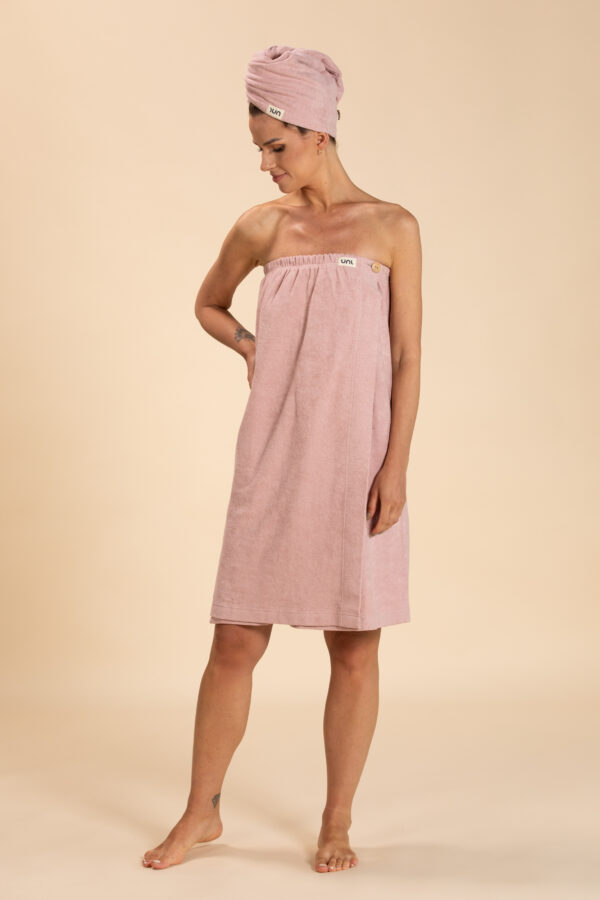 UNI vannirätiku saad mõnusasti ümber keha keerata. Rätik püsib väga mugavalt keha ümber tänu pehmele kummile ja puidust nööbile. Rätik imab väga hästi niiskust ja laseb Sinu kehal loomulikul teel kuivada.